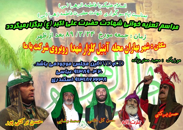 اطلاعیه های مجالس تعزیه ی موجود فروشگاه قیمت : سی دی : 2 سی دی 3000 تومان و 3 سی دی 4000 تومانمجالس تک دیویودی 3000 تومان و مجالسی که دو دیویدی هستند 6000 تومان ![]() ![]() ![]() ![]() ![]() ![]() ![]() ![]() ![]() ![]() ![]() ![]() ![]() ![]() ![]() ![]() ![]() ![]() ![]() ![]() ![]() ![]() ![]() ![]() ![]() ![]() ![]() ![]() ![]() برچسبها: اطلاعیه تعزیه, فروش مجالس تعزیه